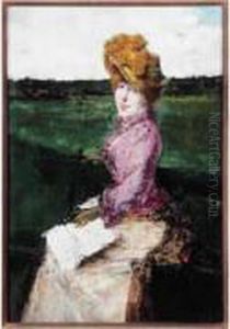 Joueuse De Mandoline Assise Sur Une Cassonne