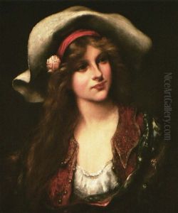 Portrait D'une Fillette Au Ruban Bleu Tenant Un Nid