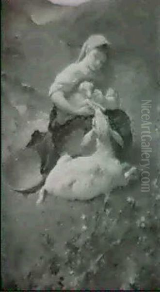 Junge Hirtin Mit Mutterschaf Und Lammlein