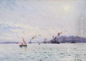 Tartane De Peche, En Fond La Flotte Dans Le Rade De Toulon