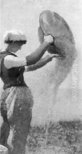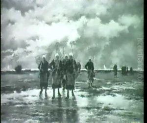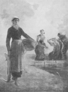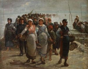 Feyen-Perrin's works were predominantly in the genre of portraiture and historical scenes. However, he is perhaps best known for his genre paintings that depicted scenes of everyday life, particularly those set in coastal regions. He had a particular affinity for the Normandy coast, and many of his works feature the sea, fishermen, and coastal landscapes. His paintings are characterized by their detailed realism and sensitivity to the effects of light and atmosphere.