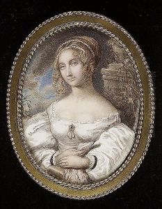 Vere Henry Close, Wearing Brown Coat Over Buffwaistcoat With Brown Spots, White Shirt With Turned-back Collar Andtied Brown Stock, Cream Trousers And Brown Boots, Holding A Ridingcrop In His Right Hand, And Sophia Caroline Close, Wearing Whitedres