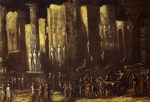 A Capriccio Of A Ruined Temple With A Colosseum Beyond