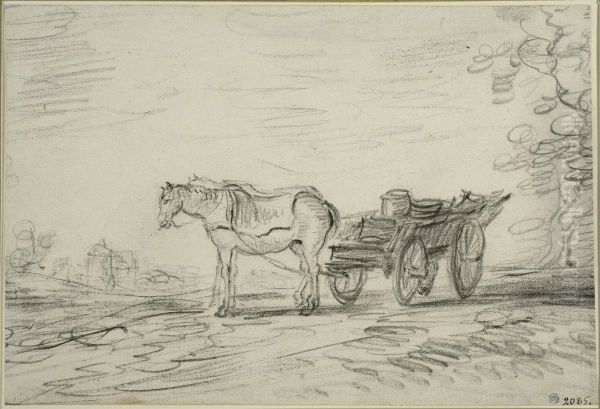 Landskap med tva hastar som drar en vagn