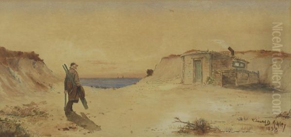 Old Man Carrying Oars In The Dunes Near A Shanty. Signed Lower Right Edmund D. Ashley