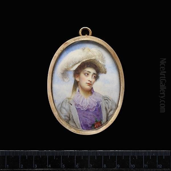 Bring the timeless beauty of Frank Brooks's A Young Lady Called Lotte, Wearing Grey-blue Dress Over A Purple Blouse With Ruffled White Collar, A Red Rose Pinned To Her Waist, Her Dark Hair Upswept Beneath A White Hat Trimmed With Ostrich Feathers And Ribbons. into your home with a handmade oil painting reproduction. Carefully recreated on canvas by skilled artists using traditional techniques, this piece captures the delicate brushwork, subtle light, and vibrant color of the original masterpiece. With museum-level quality and rich texture, it brings elegance and artistic depth to any space. Enjoy free shipping and make this masterpiece a part of your personal collection.