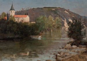 Flusslandschaft Mit Blick Auf Eine Kirche