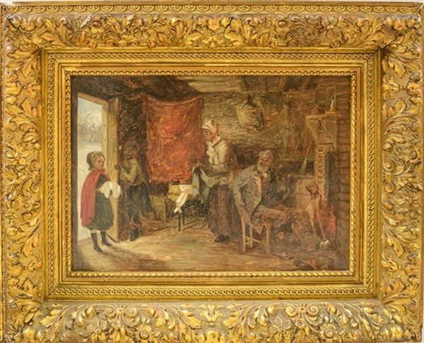 Cottage Interior With A Girl Delivering Food To An African American Family