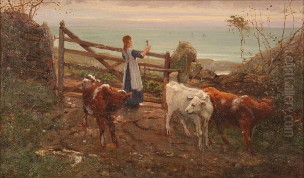 Bring the timeless beauty of Frank E. Cox's Coastal Landscape With A Girl Looking Out To Sea And Closing A Five-bar Gate Beside Cows On A Path into your home with a handmade oil painting reproduction. Carefully recreated on canvas by skilled artists using traditional techniques, this piece captures the delicate brushwork, subtle light, and vibrant color of the original masterpiece. With museum-level quality and rich texture, it brings elegance and artistic depth to any space. Enjoy free shipping and make this masterpiece a part of your personal collection.