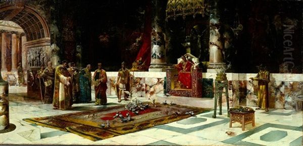 Bring the timeless beauty of Frank Le Brun Kirkpatrick's Augurs Before The Emperor into your home with a handmade oil painting reproduction. Carefully recreated on canvas by skilled artists using traditional techniques, this piece captures the delicate brushwork, subtle light, and vibrant color of the original masterpiece. With museum-level quality and rich texture, it brings elegance and artistic depth to any space. Enjoy free shipping and make this masterpiece a part of your personal collection.