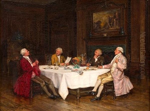 Bring the timeless beauty of Frank Moss Bennett's Gentlemen At The Table into your home with a handmade oil painting reproduction. Carefully recreated on canvas by skilled artists using traditional techniques, this piece captures the delicate brushwork, subtle light, and vibrant color of the original masterpiece. With museum-level quality and rich texture, it brings elegance and artistic depth to any space. Enjoy free shipping and make this masterpiece a part of your personal collection.