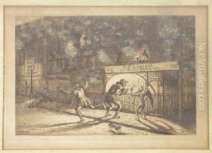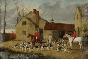 Fox Hunting Scene With Dogs Crossing The Railway