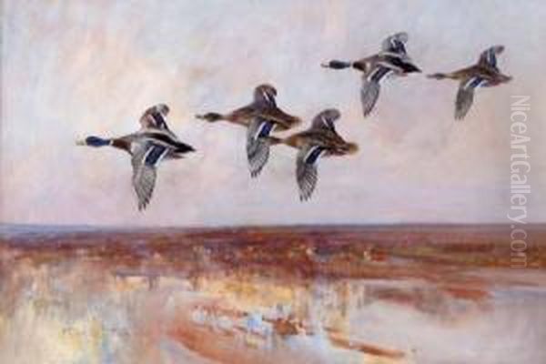 Bring the timeless beauty of Frank Southgate's Mallard In Flight Over An Estuary into your home with a handmade oil painting reproduction. Carefully recreated on canvas by skilled artists using traditional techniques, this piece captures the delicate brushwork, subtle light, and vibrant color of the original masterpiece. With museum-level quality and rich texture, it brings elegance and artistic depth to any space. Enjoy free shipping and make this masterpiece a part of your personal collection.