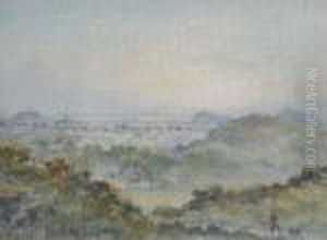 A Panorama Of The Upper Reaches Of Portsmouth Harbour From Portsdown Hill, The Harbour Entrance In The Centre With Spithead And The Isle Of Wight Beyond