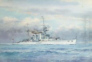 'h.m.s. King George V' At Portsmouth, 1914; The Home Port 'h.m.s. Tiger'; 'h.m.s. Ajax' 1914; Battle Ships And Tugboats By Moonlight