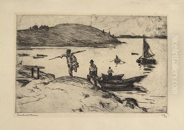 Bring the timeless beauty of Frank Weston Benson's The Landing. into your home with a handmade oil painting reproduction. Carefully recreated on canvas by skilled artists using traditional techniques, this piece captures the delicate brushwork, subtle light, and vibrant color of the original masterpiece. With museum-level quality and rich texture, it brings elegance and artistic depth to any space. Enjoy free shipping and make this masterpiece a part of your personal collection.