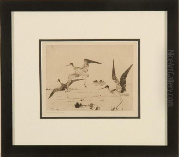 Three Yellowlegs Oil Painting by Frank Weston Benson