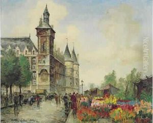 Vue De La Conciergerie Et Du Marche Aux Fleurs Sur L'ile De La Cite