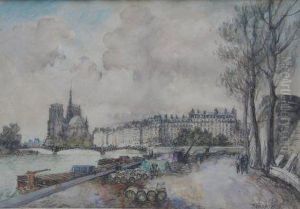 Promeneurs Sur Les Quais Pres De Notre-dame