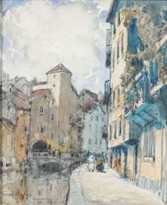 "quai Des Grands Augustins" Aquarelle,signee En Bas A Droite Et Situee "quai Des Grands Augustins" En Basa Gauche. 32 X 44,5 Cm. Au Dos, Presence De L'inscription "peint Ennov. 1835". Fils De Franck Boggs