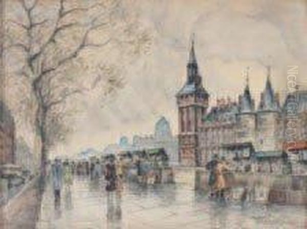 "quai Des Grands Augustins" Aquarelle,signee En Bas A Droite Et Situee "quai Des Grands Augustins" En Basa Gauche. 32 X 44,5 Cm. Au Dos, Presence De L'inscription "peint Ennov. 1835". Fils De Franck Boggs