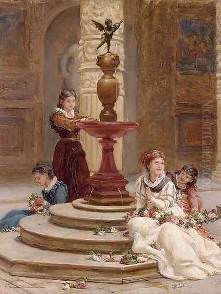 Bring the timeless beauty of Frank William Warwick Topham's Girls making flower garlands beside a fountain into your home with a handmade oil painting reproduction. Carefully recreated on canvas by skilled artists using traditional techniques, this piece captures the delicate brushwork, subtle light, and vibrant color of the original masterpiece. With museum-level quality and rich texture, it brings elegance and artistic depth to any space. Enjoy free shipping and make this masterpiece a part of your personal collection.