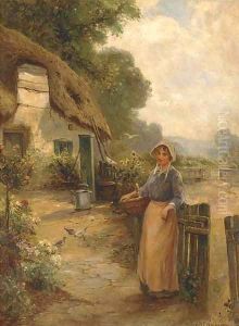 Cottage Garden With Hollyhocks