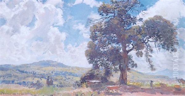 Landscape With A Wheelbarrow And Tree In The Foreground