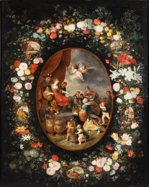The Triumph of Flora with a garland of flowers and allegories of the Five Senses