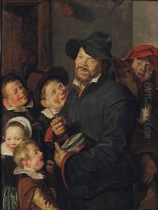 Ein Frohlicher Trinker, Links Oben Eine Eule Als Symbol Der Weisheit - Ein Moralisierender Hinweis Auf Das Torichte Handeln Des Trinkers