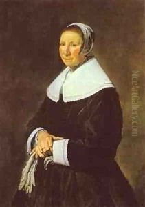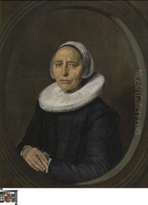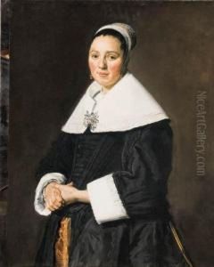 Portrait Of A Lady, Three-quarter-length, In A Black Dress With Awhite Collar And White Cuffs