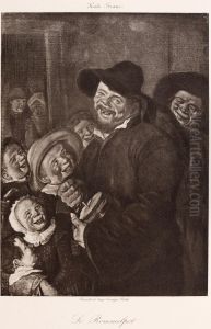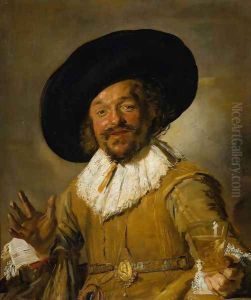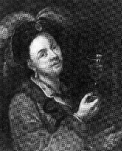 A Merry Toper, Resplendent In Feathered And Jeweled Hat And Earrings