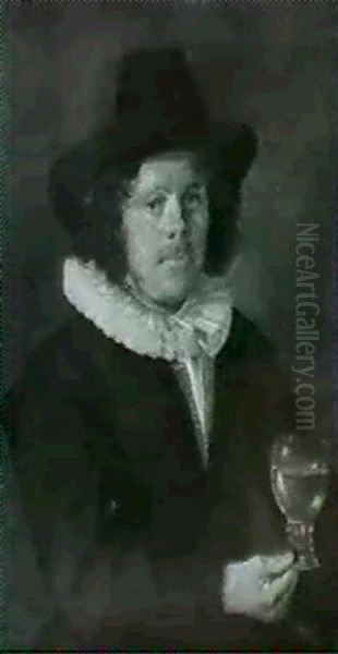 Portrait Of A Gentleman, Half Length, Holding A Roemer Oil Painting - Frans Hals