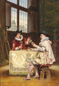 Deux Collectionneurs Dejeunant Dans Une Galerie De Peintures