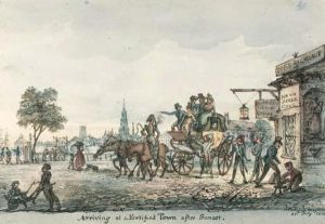 A Horseman Crossing A Drawbridge, A Town Beyond
