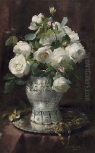 Vase Fleuri De Roses Blanches