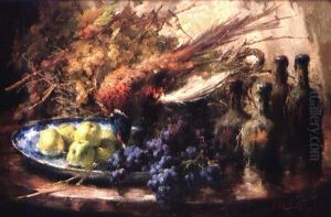 A Still Life With Grapes, A Pineapple And Pomegranates