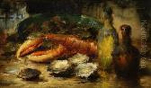 Still Life With A Lobster, Shellfish And Winebottles