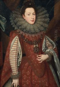 Portrait Of A Lady Wearing An Elaborate Ruff And A Gold Embroidered Dress
