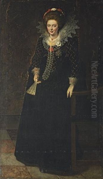 Bring the timeless beauty of Frans Pourbus the younger's Portrait Of A Lady, Full-length, In A Black Dress With A Jewelled Brooch, Holding A Fan into your home with a handmade oil painting reproduction. Carefully recreated on canvas by skilled artists using traditional techniques, this piece captures the delicate brushwork, subtle light, and vibrant color of the original masterpiece. With museum-level quality and rich texture, it brings elegance and artistic depth to any space. Enjoy free shipping and make this masterpiece a part of your personal collection.
