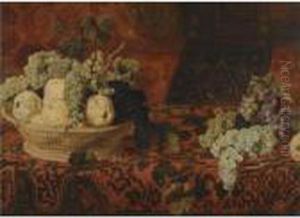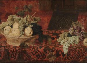 A Still Life With A Basket Of Grapes And Pears On An Ornatecarpet