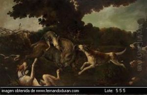 Sanglier Attaque Par Des Chiens Panneau De Chene Quatre Planches Renforcees