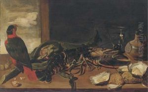 Nature Morte With Roedeer, Wild Fowl, Parrots, Lobster And Oysters