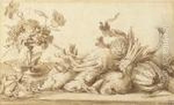 A Still Life With Birds, Rabbits And Vegetables, With A Plate And Atazza With Grapes
