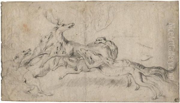 Ein Hirsch, Von Hunden Angefallen