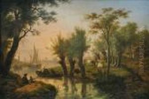 A Pastoral River Landscape With A Milkmaid Conversing With Two Men In A Boat; And A Pastoral River Landscape With An Angler And Peasants In A Boat
