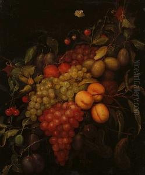 A Swag Of Grapes, Plums, Peaches With Cherries, Strawberries And Cobb Nuts