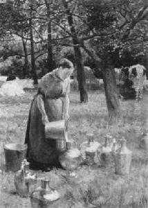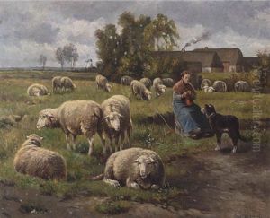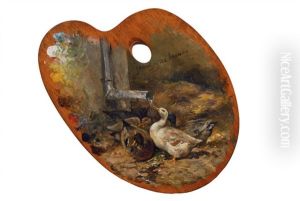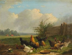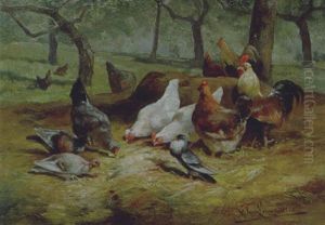 Hahn, H_hner Und K_ken In Einer Wiesenlandschaft, Dahinter Eine Kate