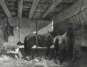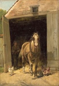 Bauer Treibt Ein Arbeitspferd Aus Dem Stall