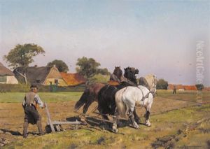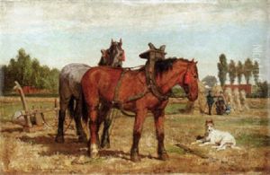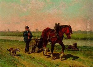 Bauer Mit Pferden An Der Schelde - Im Hintergrund Antwerpen Mit Der Oude Kerk